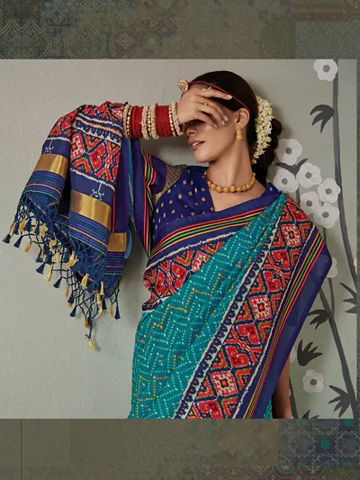Saree Fabric : Tussar Silk With Patola Print Zari Border Saree Zari Lagdi Border On saree Pallu